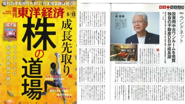 週刊東洋経済 9月18日号の【発見!成長企業】のコーナーに弊社代表取締役 榮章博のインタビューが掲載されました。