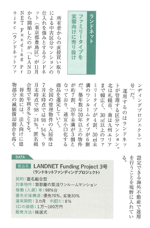 当社の「LANDNET Funding Project」では、これまで築浅ワンルームマンションを中心とした3つのファンドの募集・運用を行って参りましたが、今後は海外不動産の運用を行うことを視野に入れながら