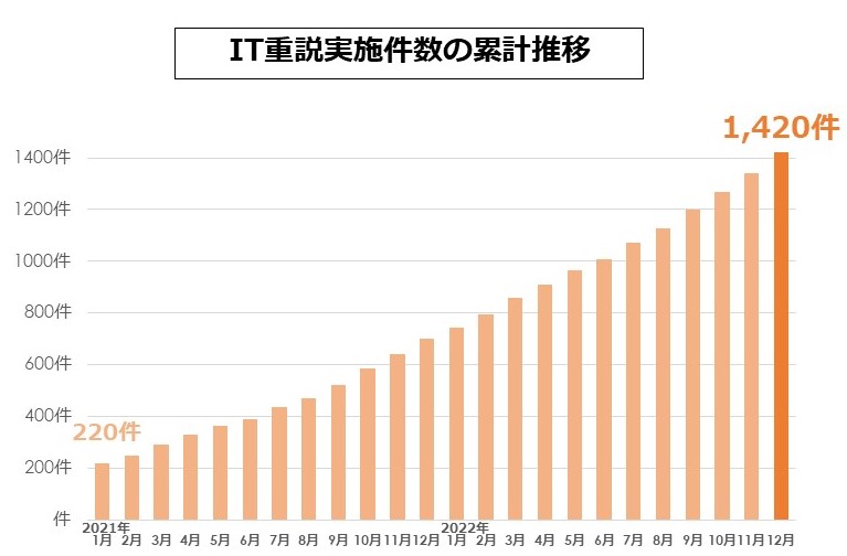 2021年1月のIT重説導入から現在まで(2022年11月30日時点)のIT 重説実施件数の累計が1,420件となりました。