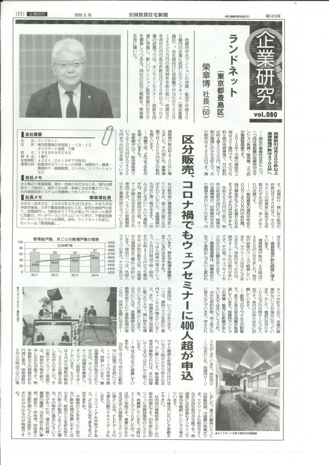 《掲載情報》全国賃貸住宅新聞 (2020.5.22)